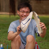 比賽因此中斷! 很怕這樣小兵就不打了! (又是另一流團危機?) 硬是要他去新竹 RD 的好朋友 - 大潤發 NIKE Outlet 買一雙鞋回來繼續打!